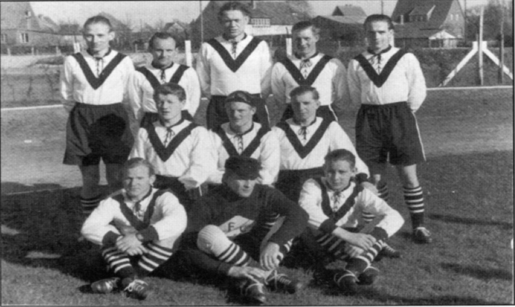 Das erste Mannschaftsfoto der ersten Garnitur des noch jungen FCVreden52 zeigt (von links) vorne: Hermann Vennemann, Hugo Huberts und Franz Gehling, in der Mitte: Werner Albersmann, Heinz Stern und Heinz Iking; hinten: Heinrich Wissen, Arthur Affelt, Bernhard Leifkes, Hubert Iking und Hans te Poele