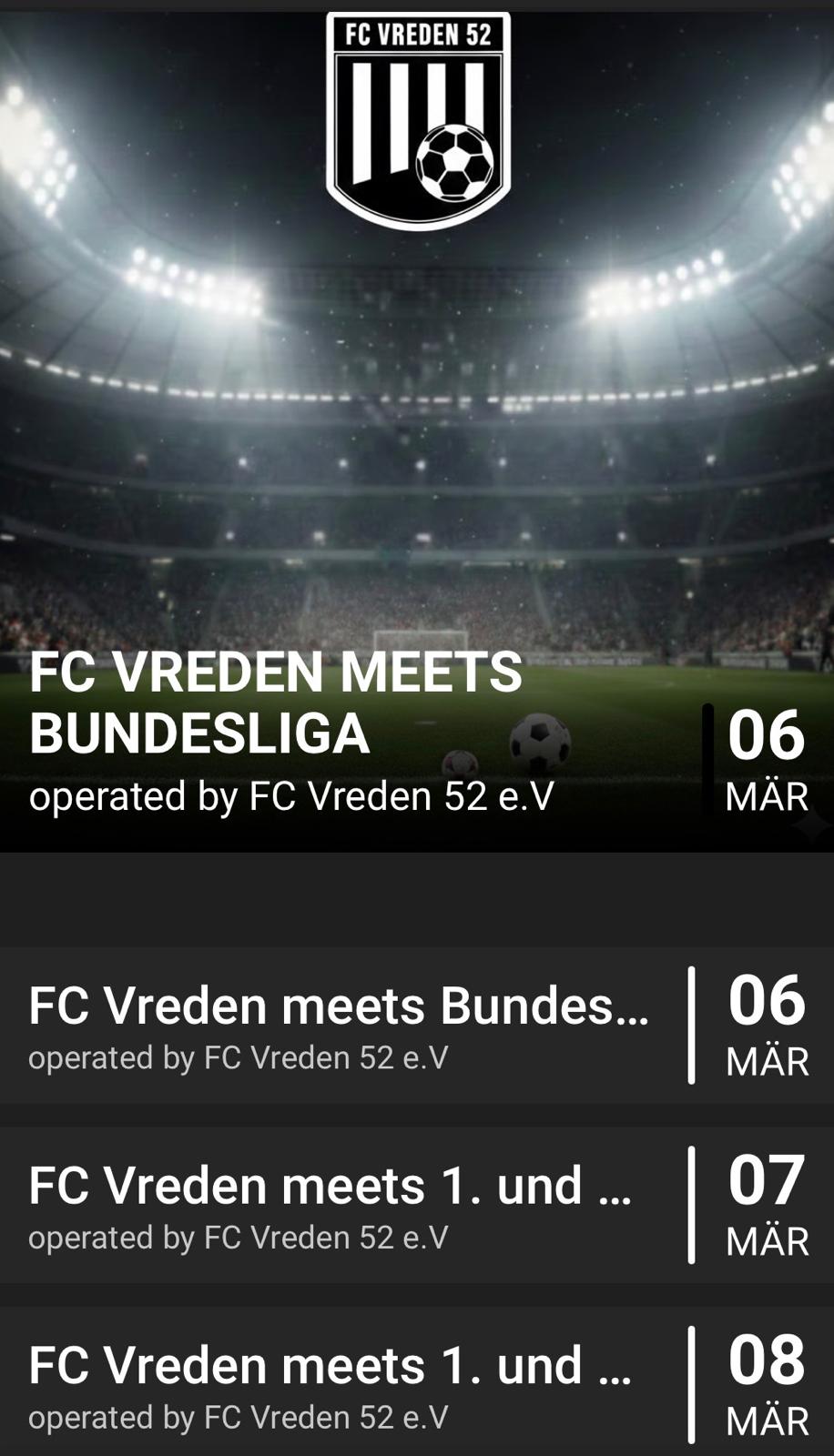 Der FC Vreden lädt zur Bundesliga ein. FC Schalke gegen Arminia Bielefeld ist um 18:30 Uhr der Anfang. Bayern München gegen Borussia Mönchengladbach spielen ab 20:30 Uhr . Am Samstag geht es mit der Bundesliga Konferenz weiter. Das Topspiel am Abend ist die Begegnung zwischen dem 1. FC Köln und Borussia Dortmund. Am Sonntag 2. Bundesliga ab 13:30 Uhr mit Preussen Münster gegen Hertha BSC Berlin. Mit der ersten Bundesliga geht es weiter. Wir freuen uns auf euch.